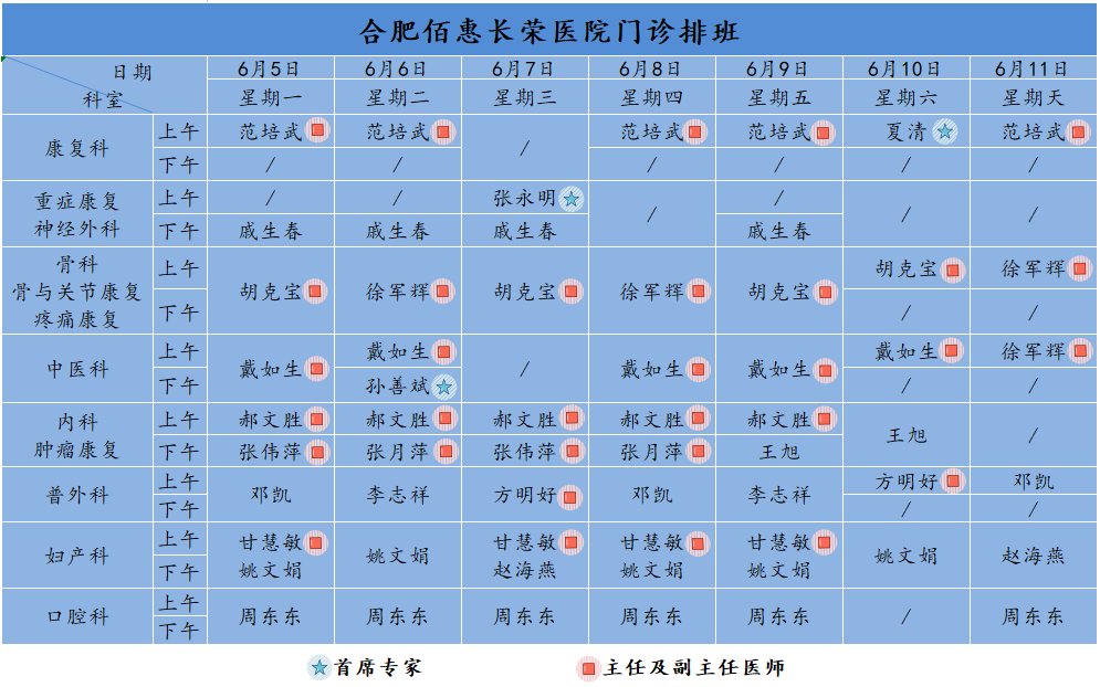 佰惠就診丨6月5日-6月11日門診排班安排