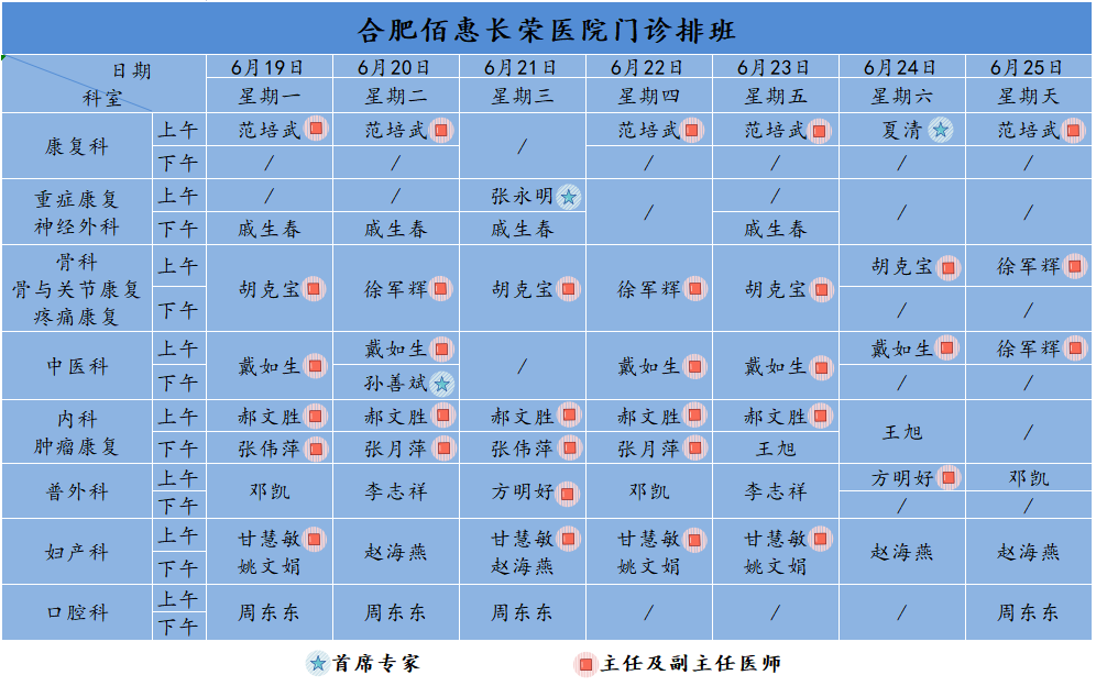 佰惠就診丨6月19日-6月25日門診排班安排