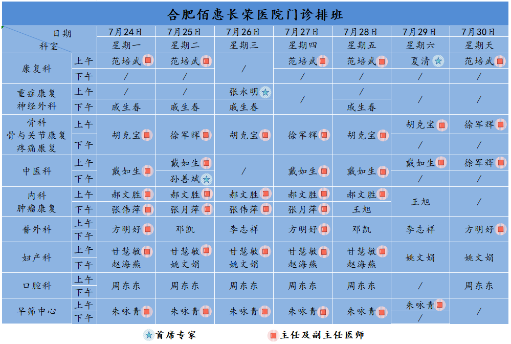 佰惠就診丨7月24日-7月30日門診排班安排