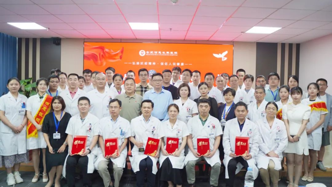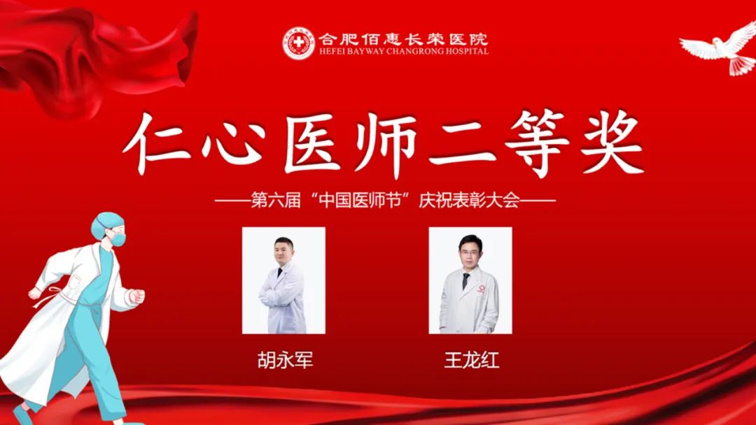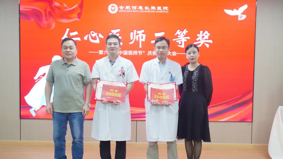 ▲合肥佰惠長榮醫(yī)院黨支部書記、副院長張永恩、常務(wù)副院長楊梅為“仁心醫(yī)師”二等獎獲得者頒獎