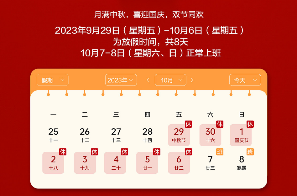 我院中秋、國慶假期通知
