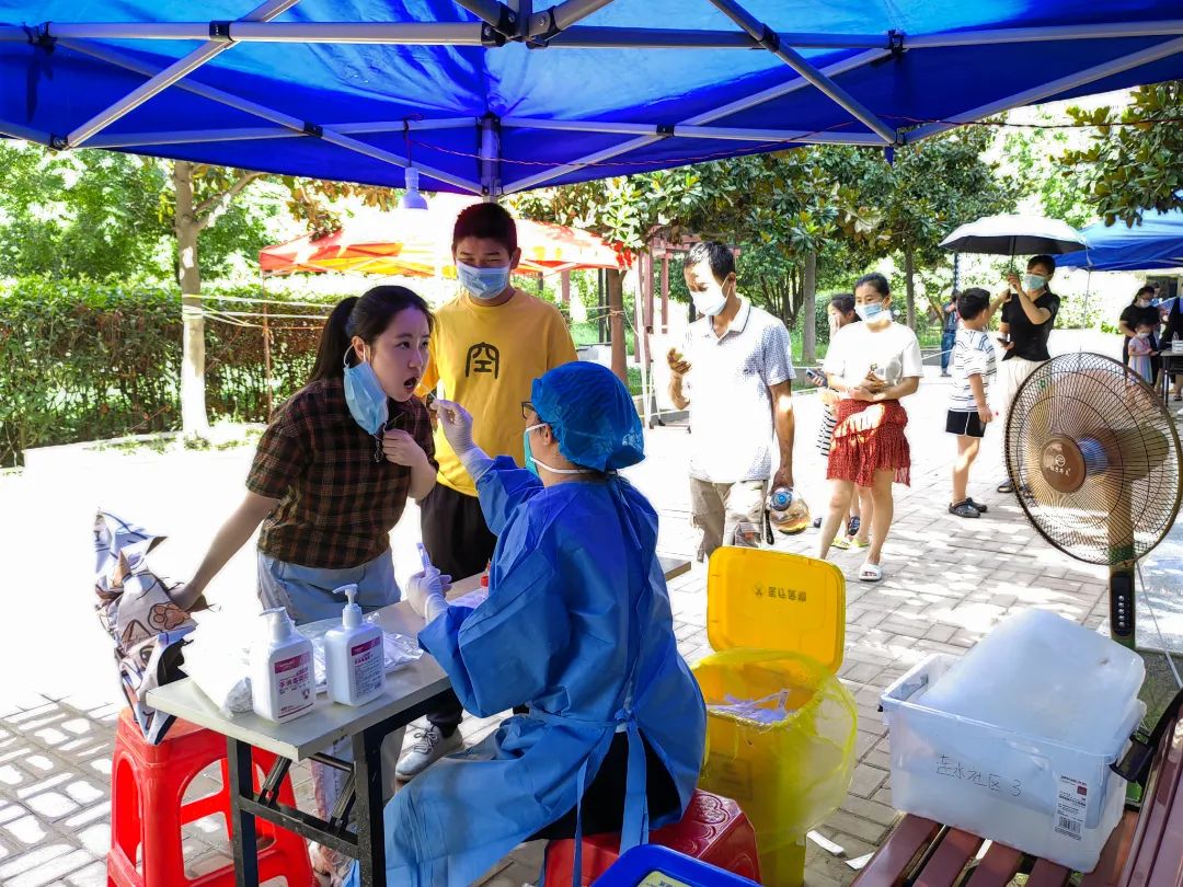 驕陽似火的烈日炙烤著廬陽大地,醫(yī)務人員“全副武裝”,冒著高溫酷暑,身著密不透風的防護服,工作數(shù)小時后,每個采樣人員都汗如雨下,防護口罩在她們臉上留下了深深的印痕,卻無人叫苦叫累。他們戰(zhàn)高溫、斗酷暑,用實際行動詮釋了醫(yī)者的責任與擔當。