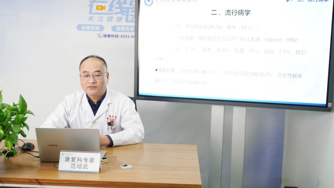 12月13日18:30-19:30,我院副院長、神經(jīng)康復(fù)科主任范培武通過線上直播平臺進行了一場專題講座,主題為《脊髓損傷的康復(fù)》。這場直播的目的是向在線觀眾傳遞關(guān)于脊髓損傷康復(fù)準確且全面的知識,通過講解實用的康復(fù)指導(dǎo)和技巧,為正在進行康復(fù)過程的患者和家人提供幫助和支持。