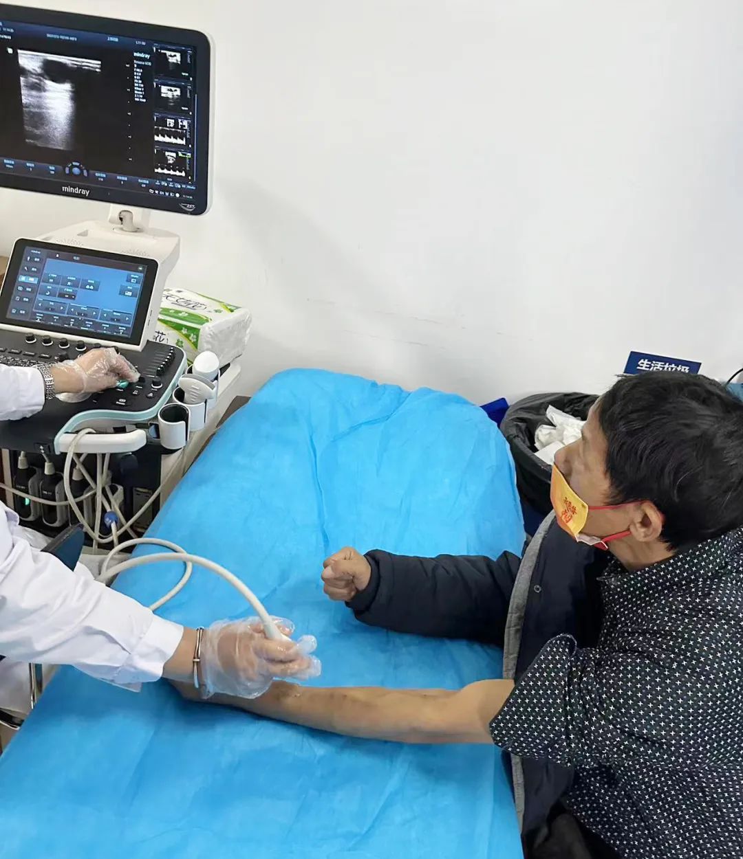 交流會結(jié)束后,血透中心與彩超室通力合作,為多名血透患者進行了血管B超檢查。通過篩查,發(fā)現(xiàn)了一些患者血管通路出現(xiàn)問題,并及時指導(dǎo)他們進行血管通路干預(yù),以避免內(nèi)瘺的風險。同時,李教授對內(nèi)瘺評估及血流量測量,內(nèi)瘺穿刺等內(nèi)容進行細致講解,這一舉措有效提高了醫(yī)生對動靜內(nèi)瘺評估的能力,提升了護士動靜脈內(nèi)瘺彩超穿刺技術(shù)的水平,得到了醫(yī)患雙方的一致好評。