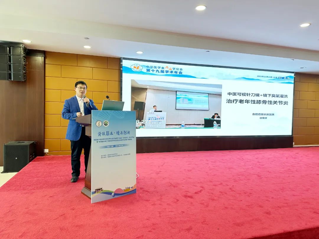 會上,我院骨科/骨科康復(fù)副主任醫(yī)師徐軍輝以《中醫(yī)可視針刀鏡+鏡下臭氧灌洗治療老年性膝骨性關(guān)節(jié)炎》為題作學(xué)術(shù)報(bào)告。