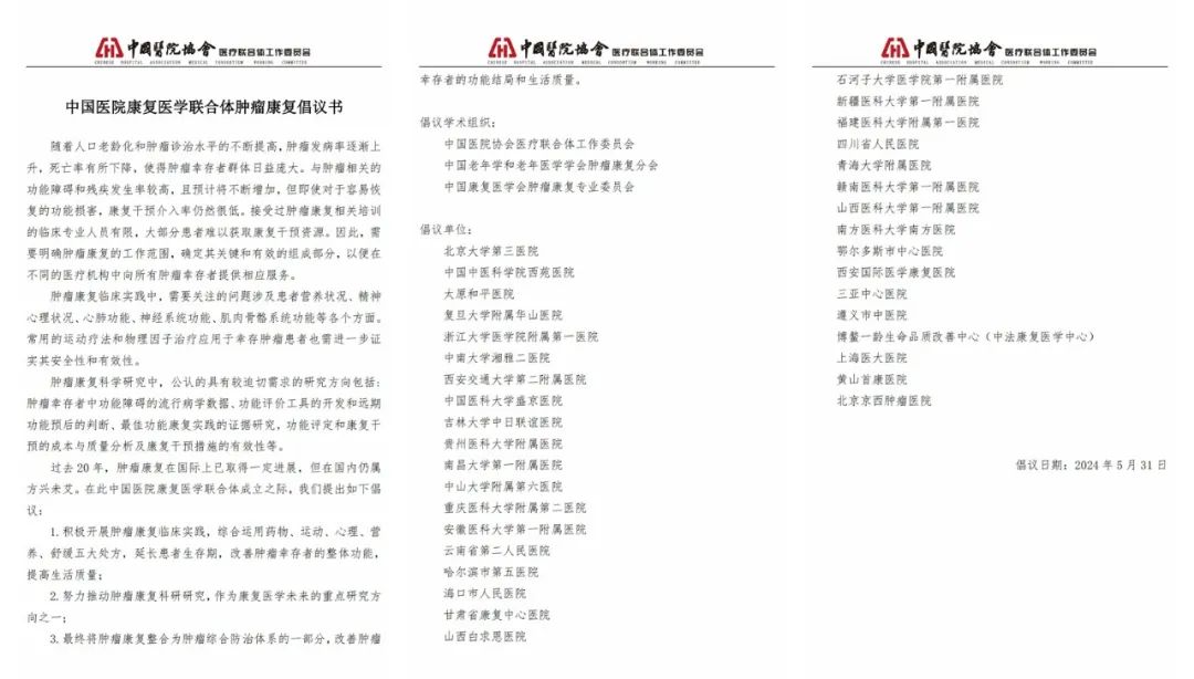 “中國醫(yī)院康復(fù)醫(yī)學(xué)聯(lián)合體腫瘤康復(fù)”倡議書