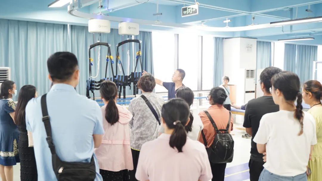 此外,為了加深學(xué)員們對(duì)康復(fù)實(shí)踐的理解與掌握,我院還特別安排了實(shí)地參觀環(huán)節(jié)。在智能康復(fù)大廳內(nèi),學(xué)員們近距離接觸了智能天軌系統(tǒng)、外骨骼機(jī)器人等智能康復(fù)治療設(shè)備,并在治療師部張煜主任的悉心講解下,對(duì)這些設(shè)備的工作原理與臨床應(yīng)用有了更為深入的認(rèn)識(shí)與了解。