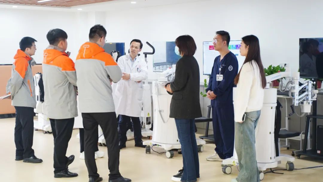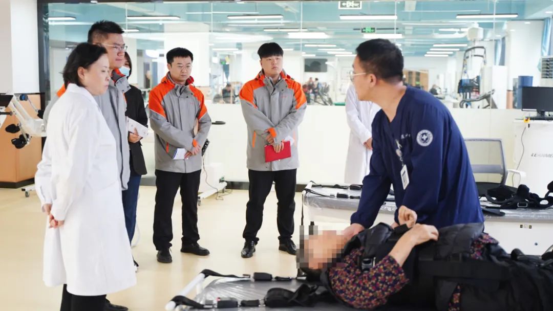 座談會(huì)開(kāi)始前,平安保險(xiǎn)集團(tuán)車(chē)險(xiǎn)人傷主管張宇一行實(shí)地參觀了我院門(mén)急診大廳、骨科/骨康病區(qū)以及AI智能康復(fù)大廳等重要區(qū)域。