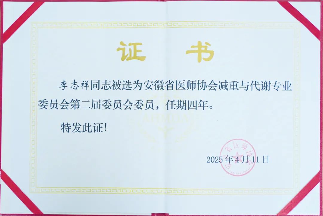 此次任命,不僅是對李志祥主任個(gè)人能力的肯定,更標(biāo)志著我院減重與代謝專業(yè)技術(shù)獲得了權(quán)威認(rèn)證。合肥佰惠醫(yī)院將以此為契機(jī),持續(xù)深化專科建設(shè),推動減重與代謝專業(yè)的高質(zhì)量發(fā)展,為超重及代謝異?;颊咛峁┛茖W(xué)、系統(tǒng)、可持續(xù)的健康管理方案,助力更多患者實(shí)現(xiàn)科學(xué)減重,重獲健康人生。