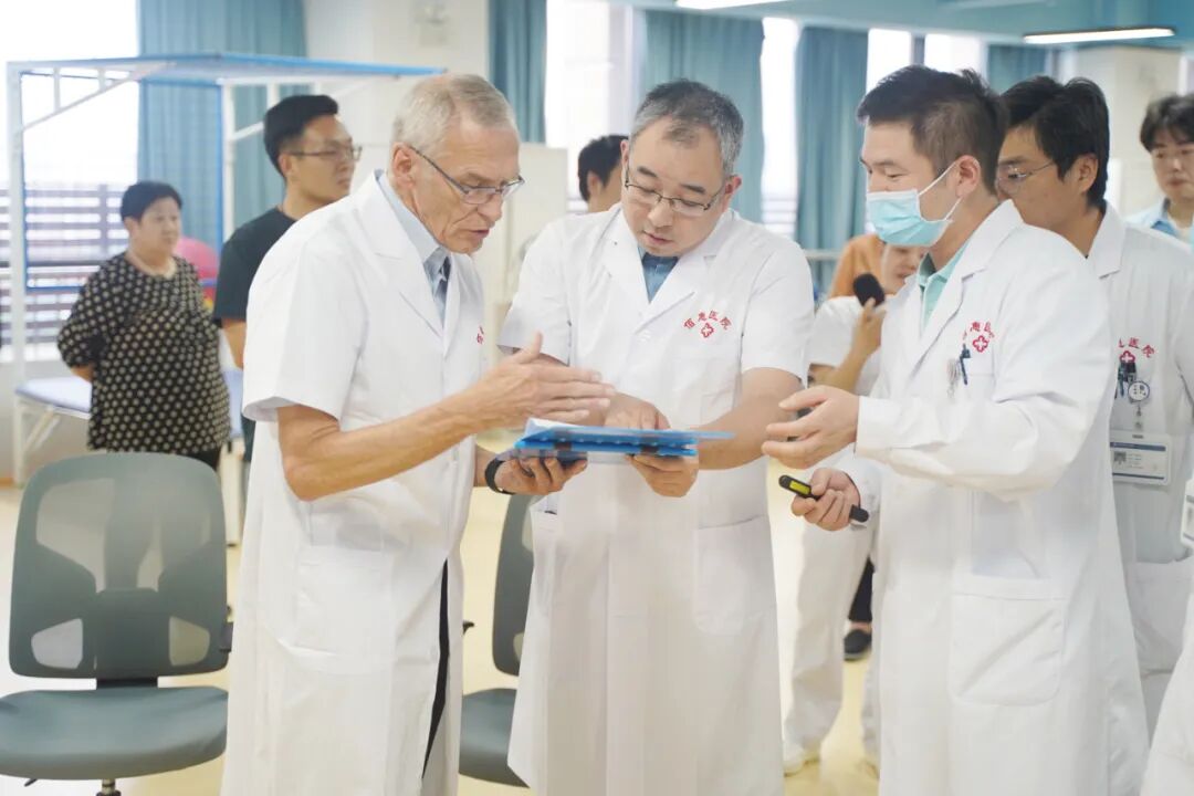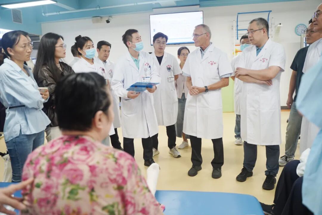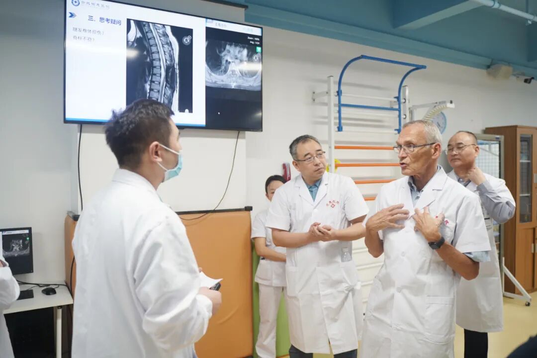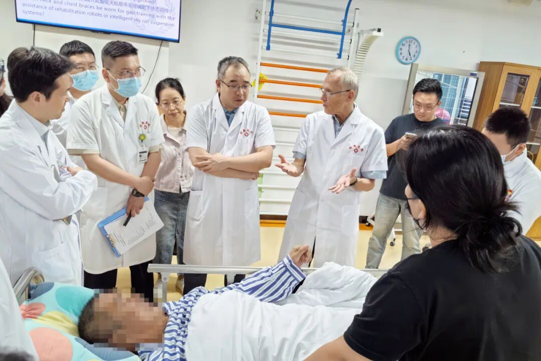 病例討論環(huán)節(jié)中我院特邀Fin Biering-S?rensen教授、劉楠教授共同深入康復(fù)治療大廳,開展床邊教學(xué)與病歷指導(dǎo)。專家團隊結(jié)合多例復(fù)雜脊髓損傷康復(fù)病例,就早期診斷、國際化評估方法、個性化康復(fù)目標(biāo)設(shè)定到前沿新技術(shù)應(yīng)用及長期康復(fù)管理策略等方面,進行了系統(tǒng)、深入的現(xiàn)場分析與研討,顯著提升了我院在脊髓損傷重癥康復(fù)方面的多維診療能力。